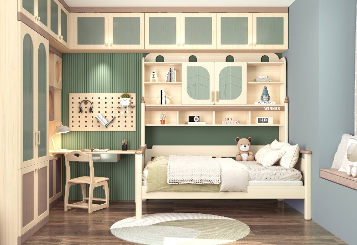 床的位置要合理,避免靠近窗戶(hù)和門(mén),以免受到外界的干擾。可以選擇帶有床頭燈和床頭柜的床,方便孩子在睡前閱讀和存放物品。