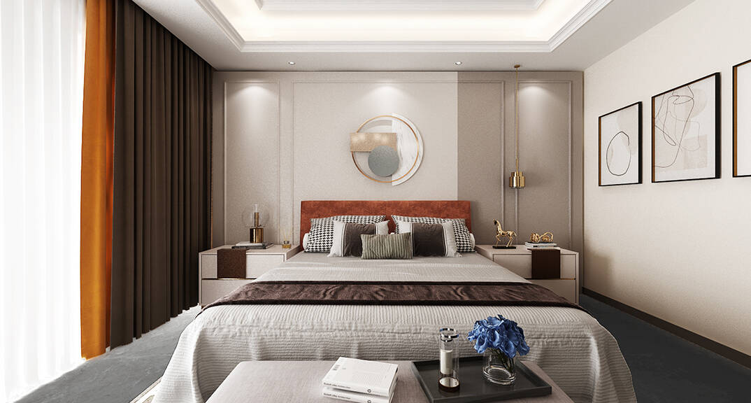 萊西天泰壹號(hào)院 別墅 300㎡ 二層主臥新中式裝修效果圖