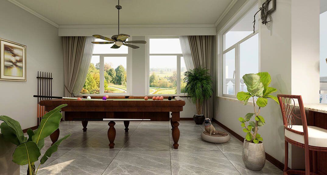龍湖九里香醍 350㎡ 別墅 新中式風(fēng)格臺(tái)球室裝修效果圖