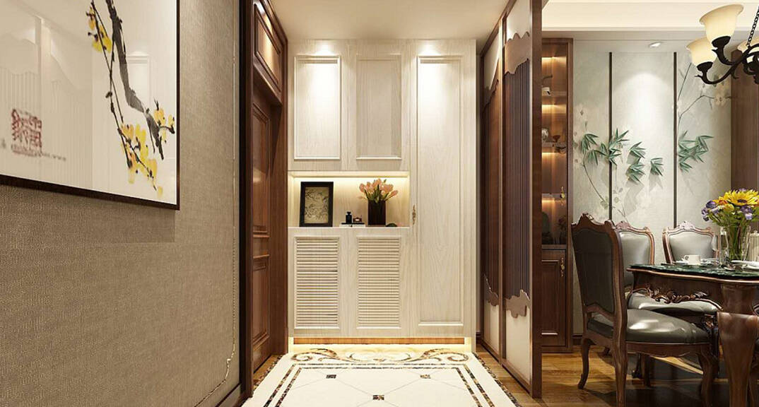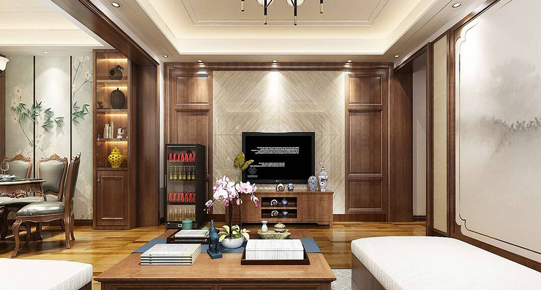 根據(jù)業(yè)主喜歡的木色搭配裝飾顏色和造型,打破中式沉悶黑暗的氛圍。運用中式元素和新材料相結(jié)合,整體賞心悅目。