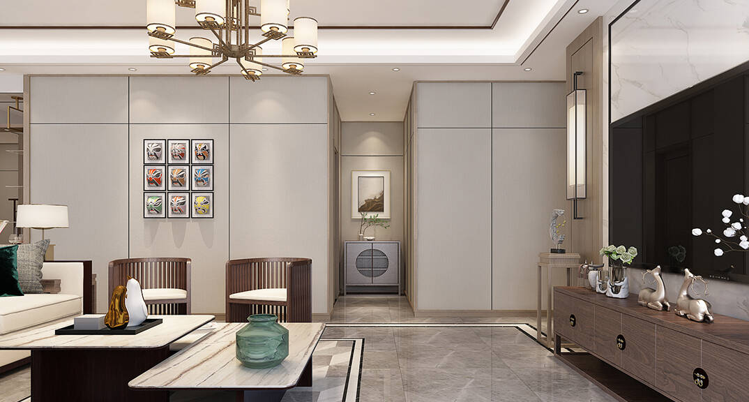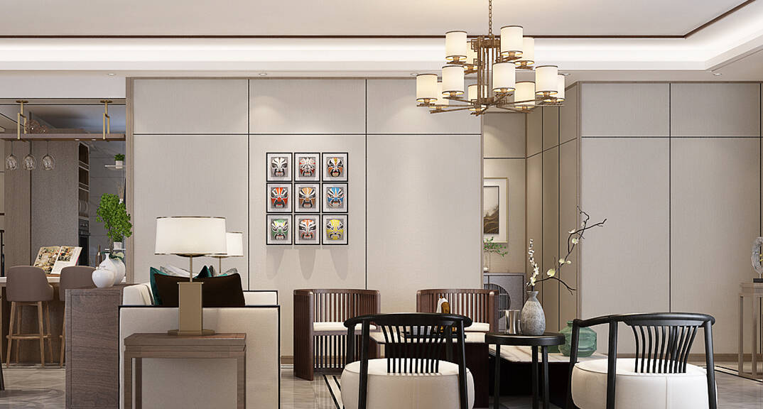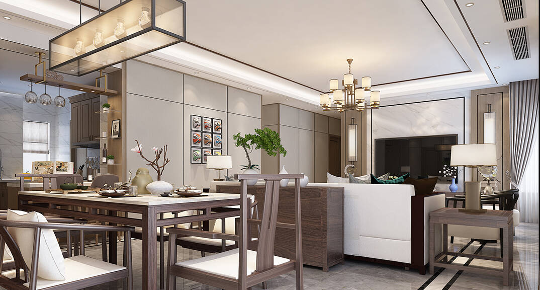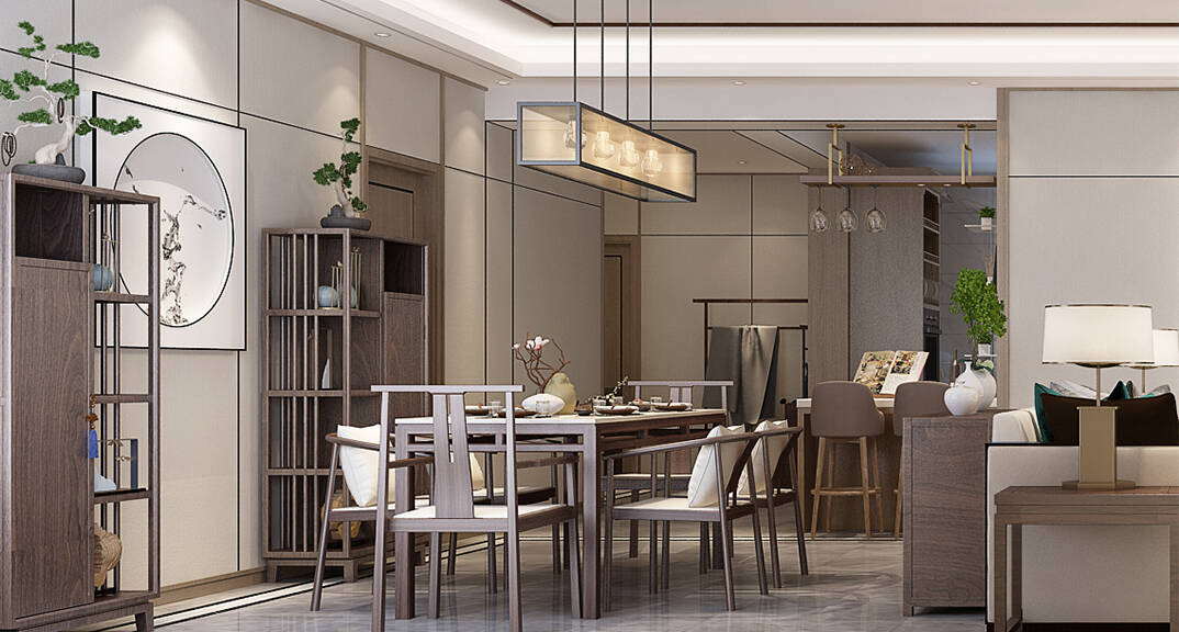 幾何藝術(shù)的變奏,在方圓分寸之間,紅鯉嬉游蓮葉間的抽象意境,與干支花藝對(duì)比明顯,素雅間亦有和潤質(zhì)感。與新元素共生,起居室的設(shè)計(jì)闡述的事千百年來從未易改的東方哲學(xué)進(jìn)階人生。一草一木皆是中國傳統(tǒng)意向的完美再現(xiàn),經(jīng)典又和諧