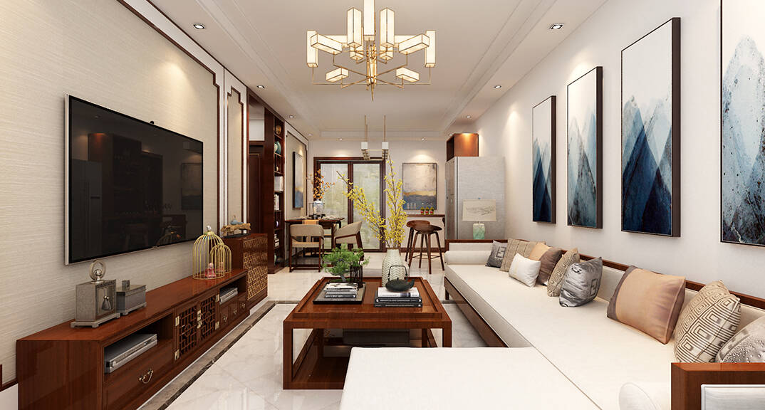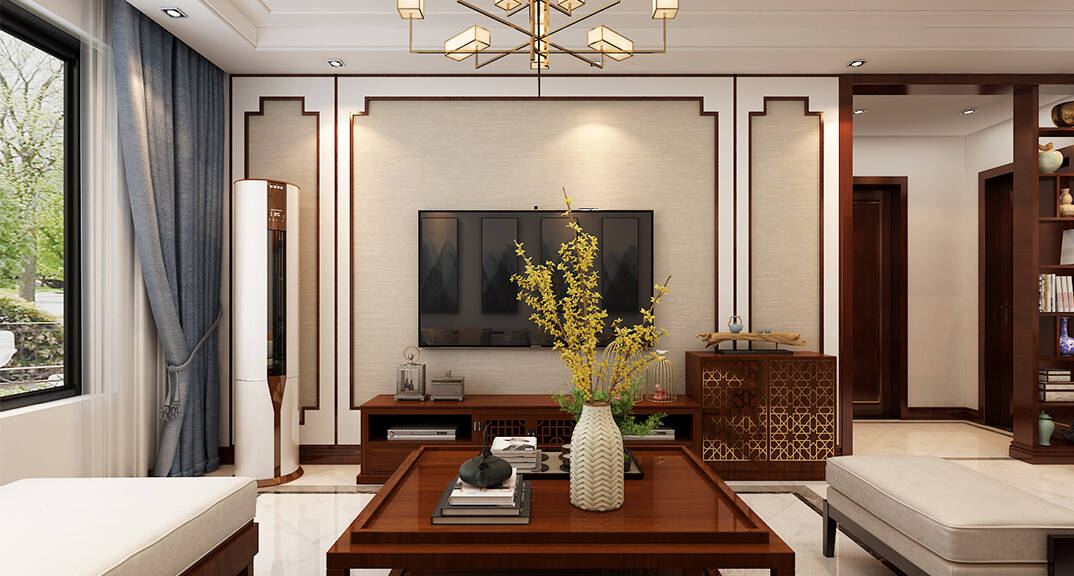 色彩搭配上主要運(yùn)用實(shí)木線(xiàn)條體現(xiàn)中式風(fēng)格的質(zhì)感,搭配石膏板線(xiàn)條吊頂,更增加了空間的靈活性。