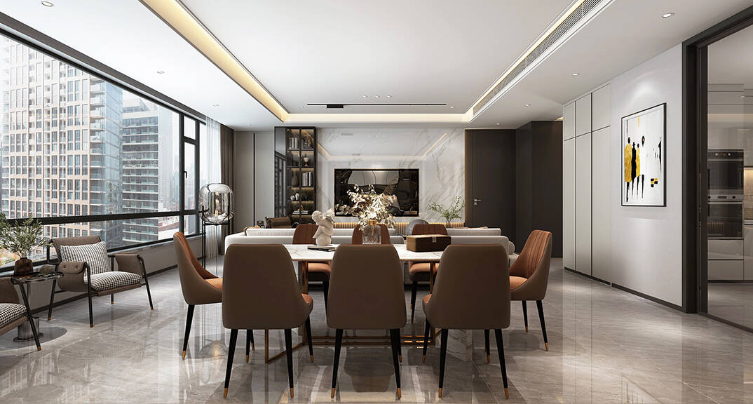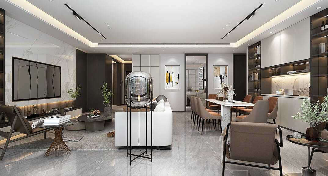 整體簡歐風(fēng)格在設(shè)計(jì)上用經(jīng)典軸線、對(duì)稱布局的方式,結(jié)合淡雅的空間色調(diào)或幾何線條與典雅時(shí)尚的陳設(shè)軟裝,打造出一個(gè)歐式輕奢的現(xiàn)代主義格調(diào)。