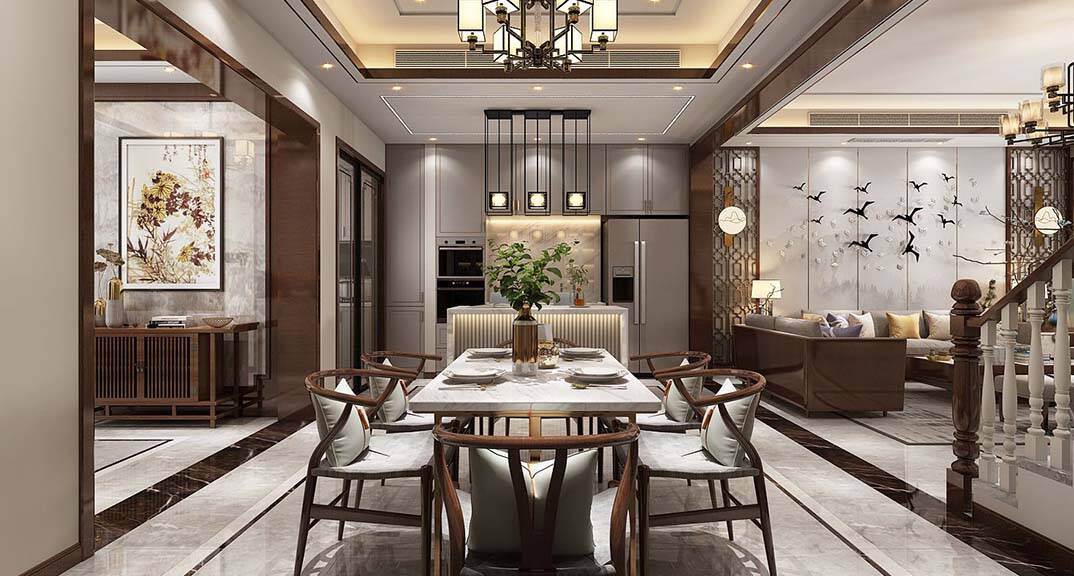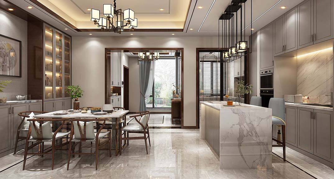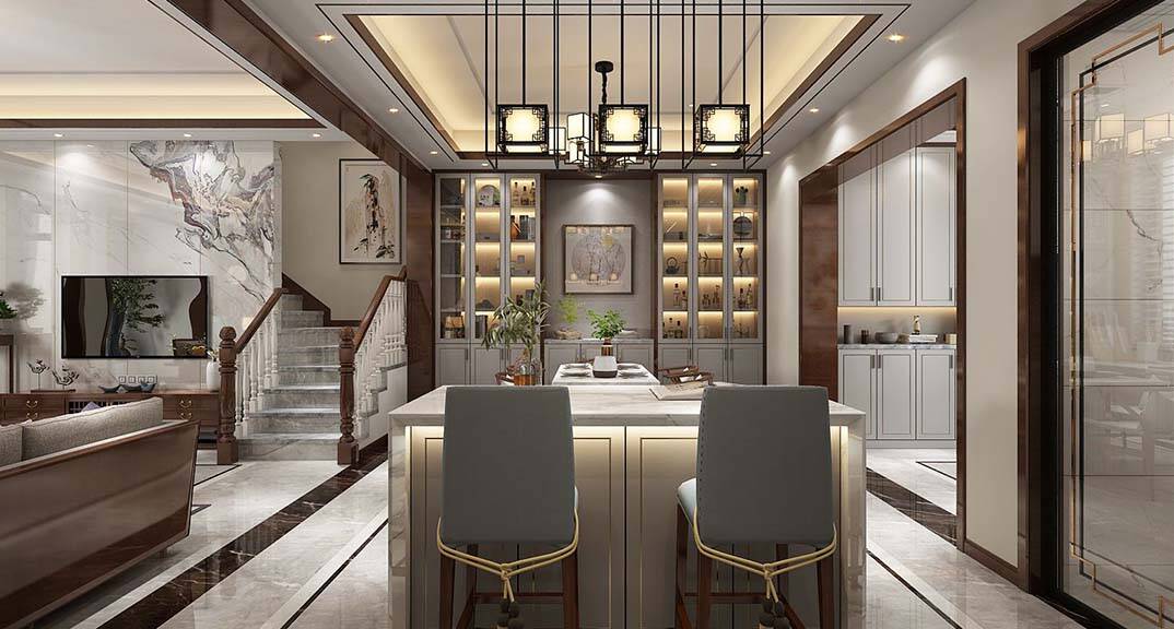 每個家庭的裝修中都需要擁有功能性的設(shè)計(jì),這也是一個家居裝修中最主要的目的。新中式風(fēng)格的設(shè)計(jì)理念也體現(xiàn)出了功能性的設(shè)計(jì)。比如西餐廳加入大理石島臺的設(shè)計(jì),既體現(xiàn)其視覺上的美感,又具有實(shí)用性。
