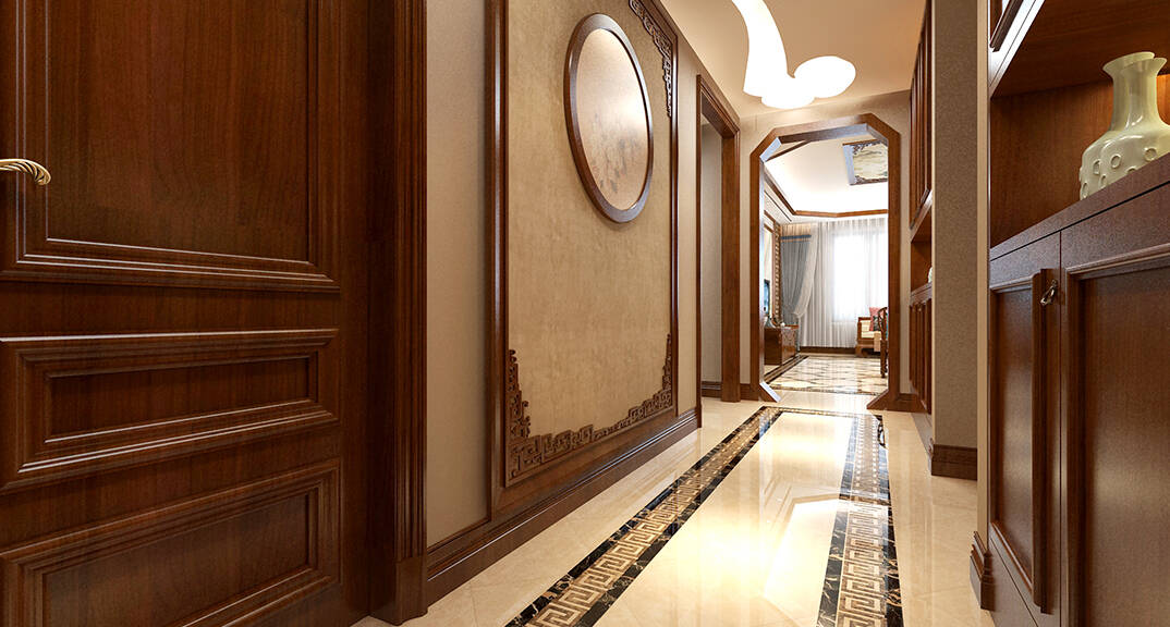海怡半山216㎡三室二廳三衛(wèi)走廊過道新中式風(fēng)格裝修案例效果圖