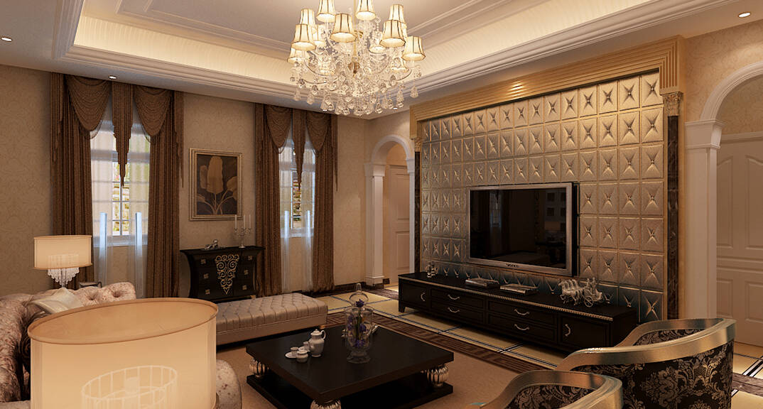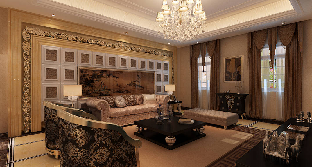 時(shí)代城翡翠郡240㎡別墅客廳歐式風(fēng)格裝修效果圖