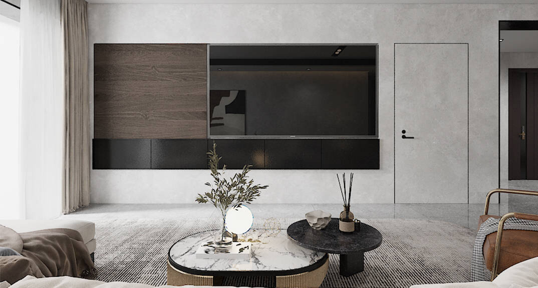 海爾世紀(jì)公館150㎡平層客廳現(xiàn)代極簡風(fēng)格裝修案例效果圖