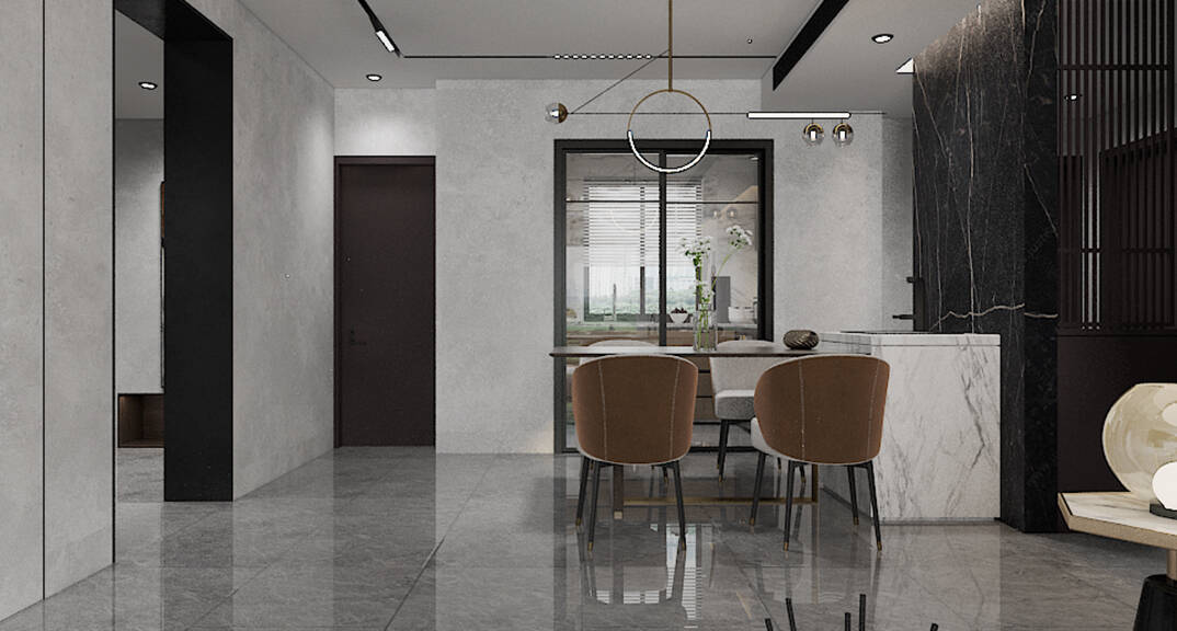 海爾世紀(jì)公館150㎡平層餐廳現(xiàn)代極簡風(fēng)格裝修案例效果圖