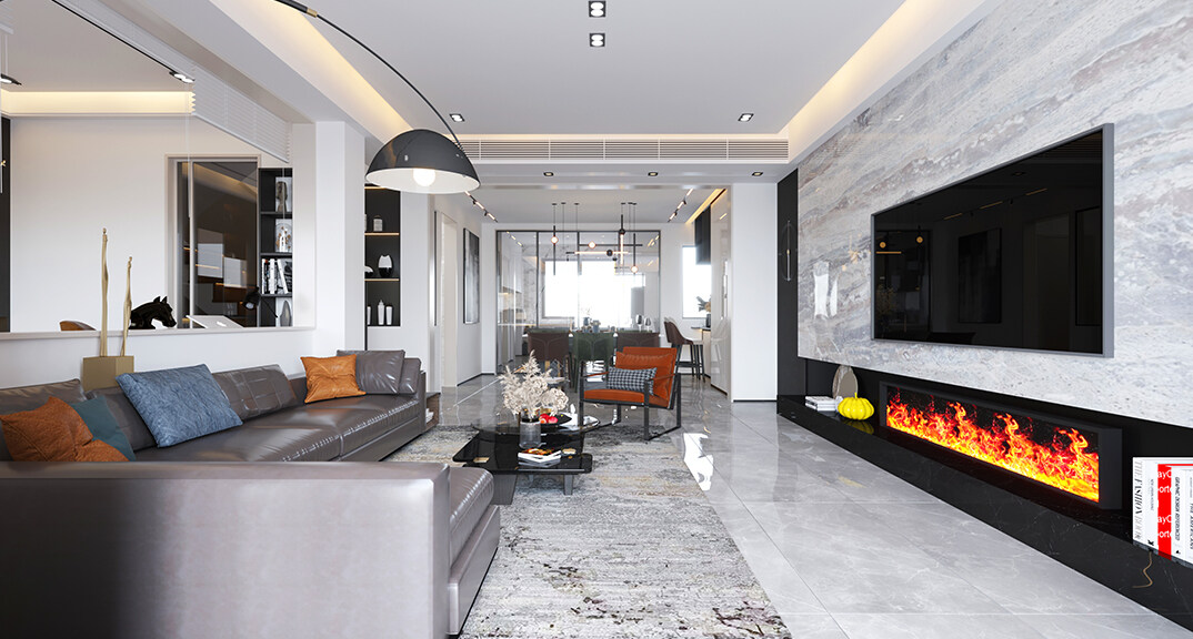 萊頓小鎮(zhèn)·海語墅250㎡別墅下疊一層客廳現(xiàn)代簡約風(fēng)格裝修案例效果圖