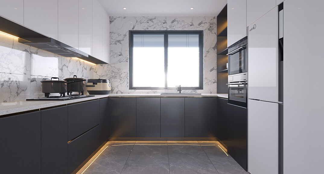 萊頓小鎮(zhèn)·海語墅250㎡別墅下疊一層廚房現(xiàn)代簡約風(fēng)格裝修案例效果圖