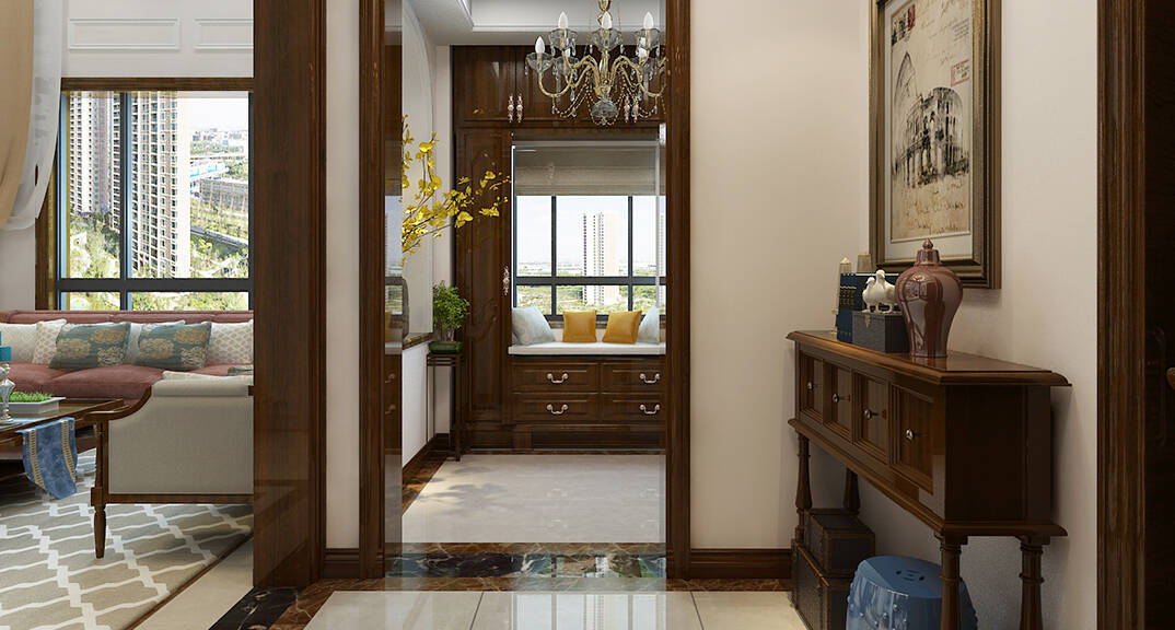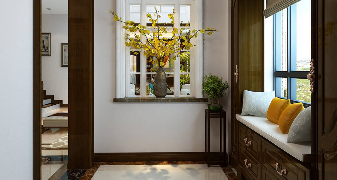 銀盛泰德郡260㎡別墅復(fù)式入戶玄關(guān)新中式風(fēng)格裝修案例效果圖