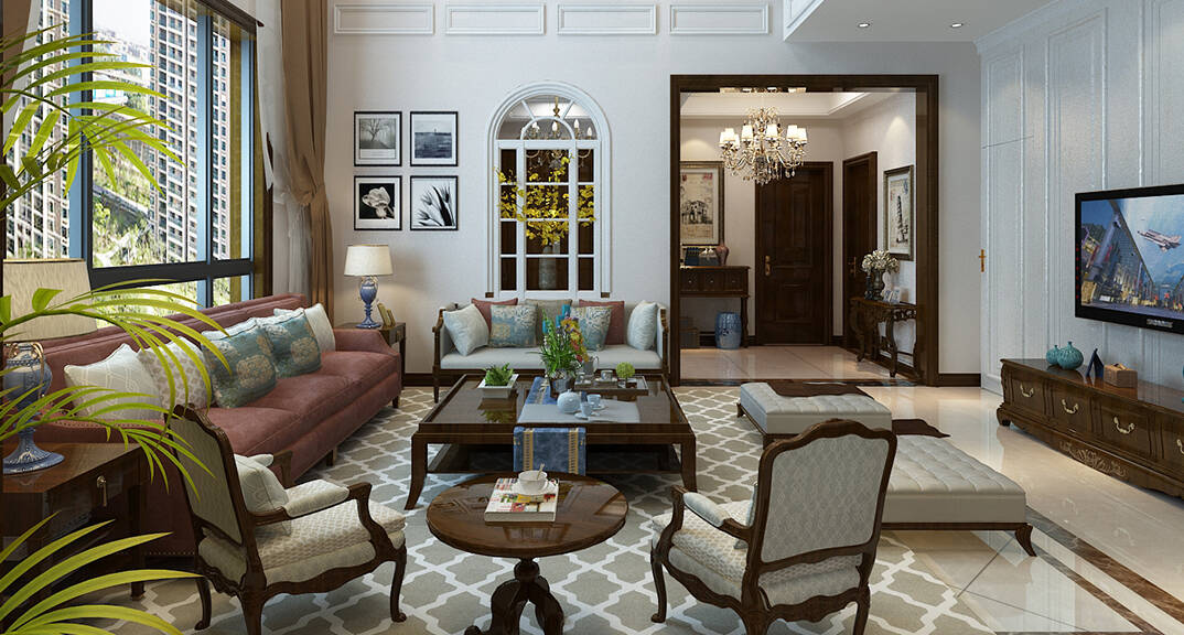 銀盛泰德郡260㎡別墅復(fù)式客廳新中式風(fēng)格裝修案例效果圖