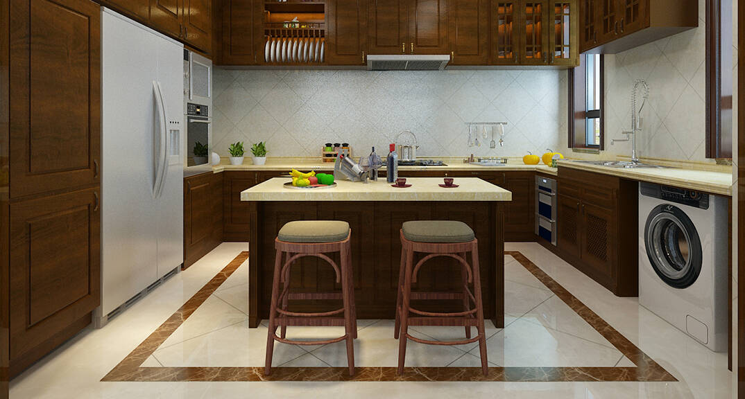 銀盛泰德郡260㎡別墅復(fù)式廚房新中式風(fēng)格裝修案例效果圖