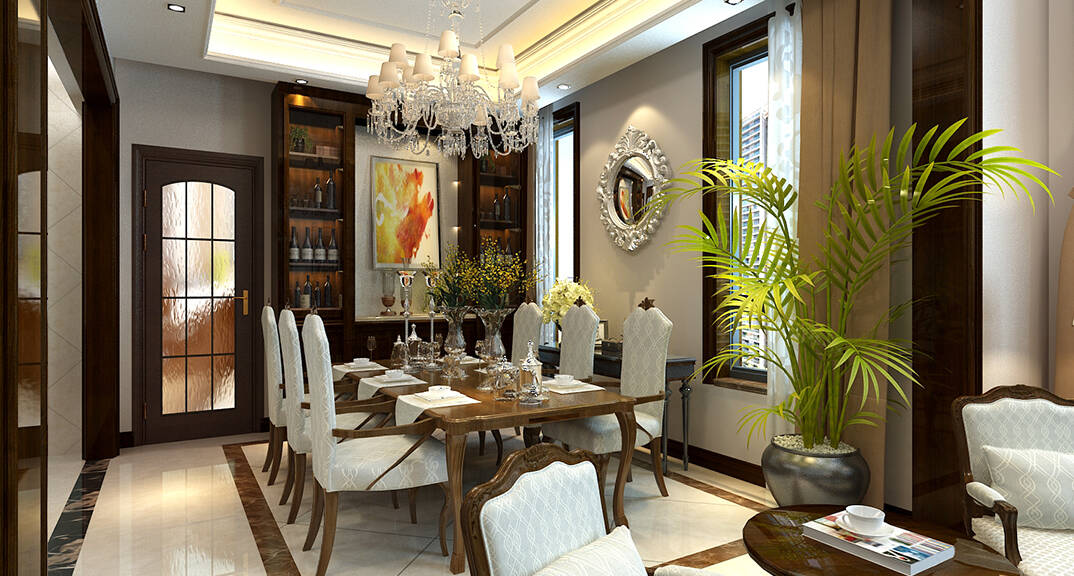 銀盛泰德郡260㎡別墅復(fù)式餐廳新中式風(fēng)格裝修案例效果圖
