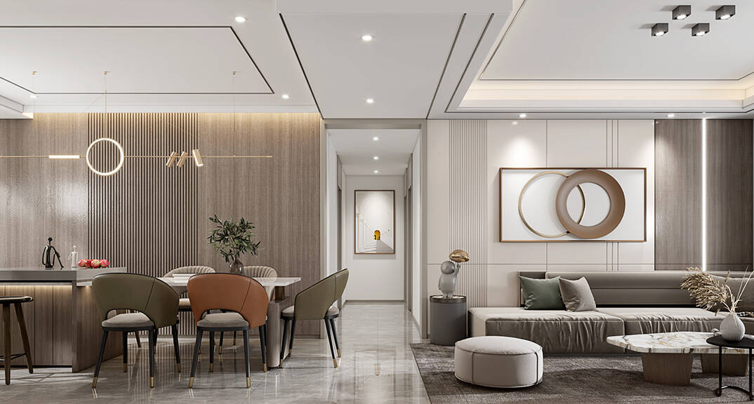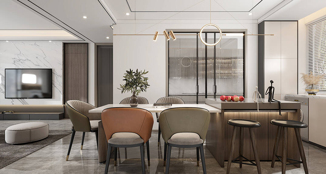 溫莎郡135㎡三室一廳客餐廳現(xiàn)代簡約風格裝修案例效果圖