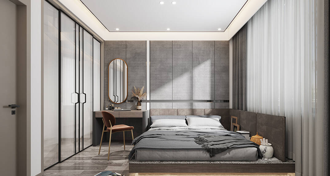 溫莎郡135㎡三室一廳臥室電視墻現(xiàn)代簡約風格裝修案例效果圖