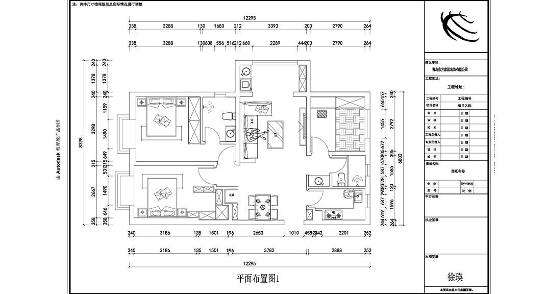 中南世紀城112平2居室簡約風格裝修戶型圖