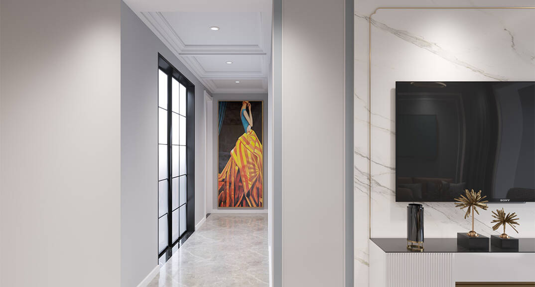 膠州機場公寓93㎡二室一廳過道走廊輕奢風(fēng)格裝修案例效果圖