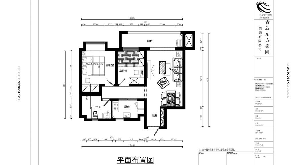 膠州機場公寓93㎡二室一廳客廳輕奢風(fēng)格裝修戶型設(shè)計圖