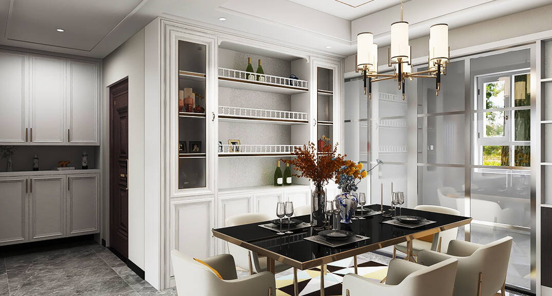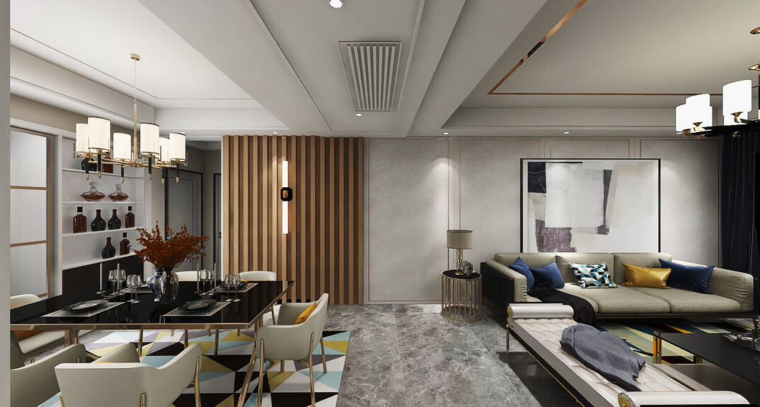 膠州機場公寓138㎡二室一廳客餐廳輕奢風格裝修案例效果圖