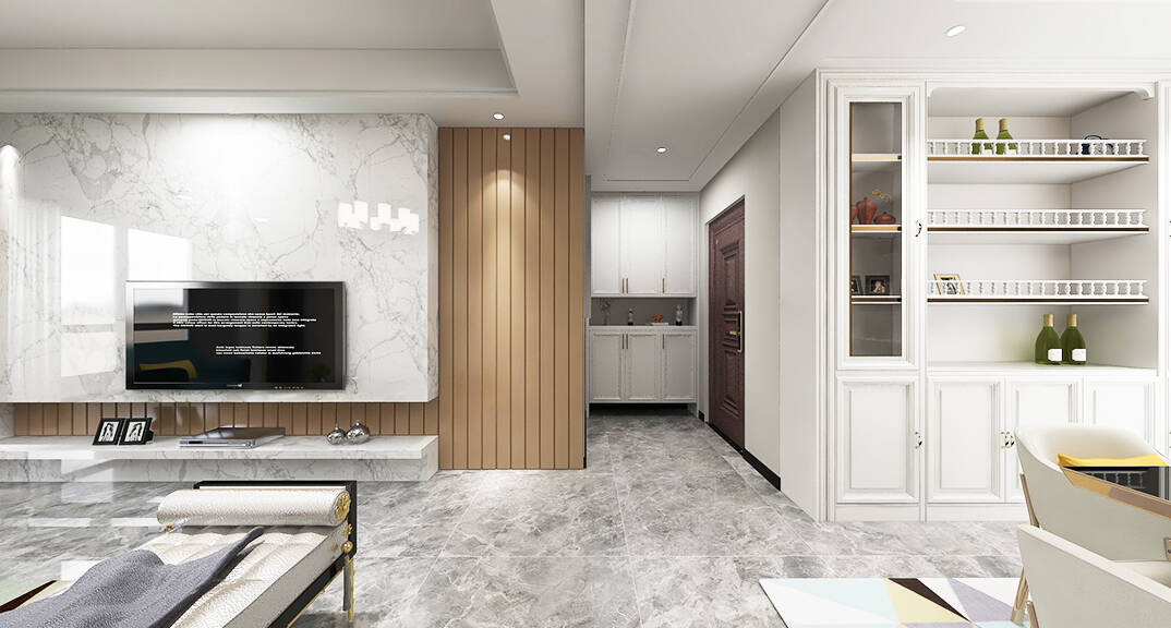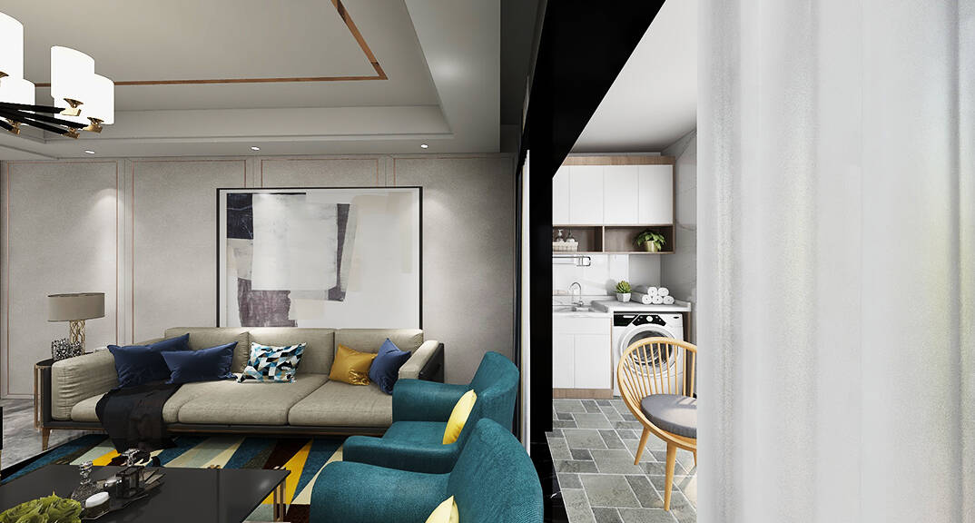 膠州機場公寓138㎡二室一廳客廳輕奢風格裝修案例效果圖