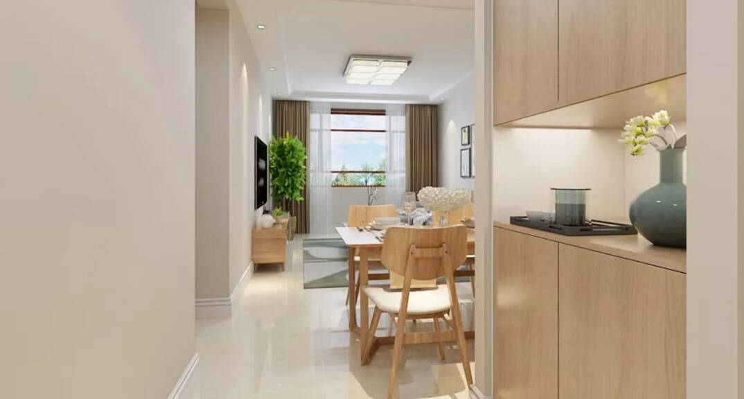 客餐廳一體化,以過道為分界線,玄關(guān)鞋柜有亮點中間做的是隔層的設(shè)計,可以順手就可以放鎖匙、裝飾品、小物件、小盆栽等等,生活起來非常方便實用性很強。