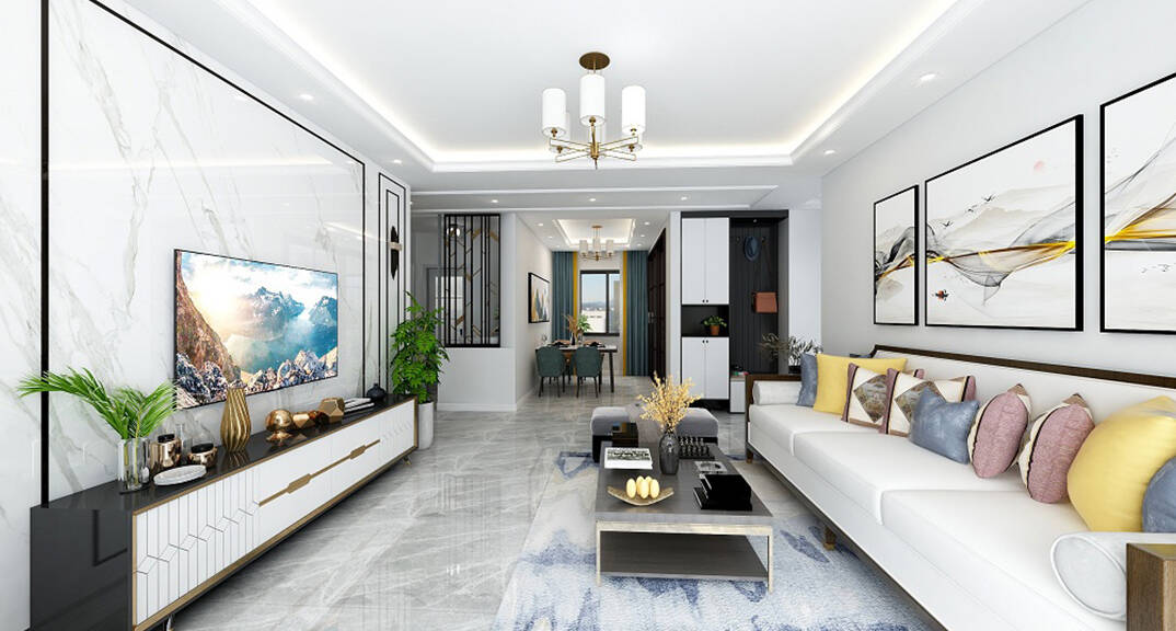 鑫江桂花園120㎡二室一廳二衛(wèi)客廳新中式風(fēng)格裝修案例效果圖