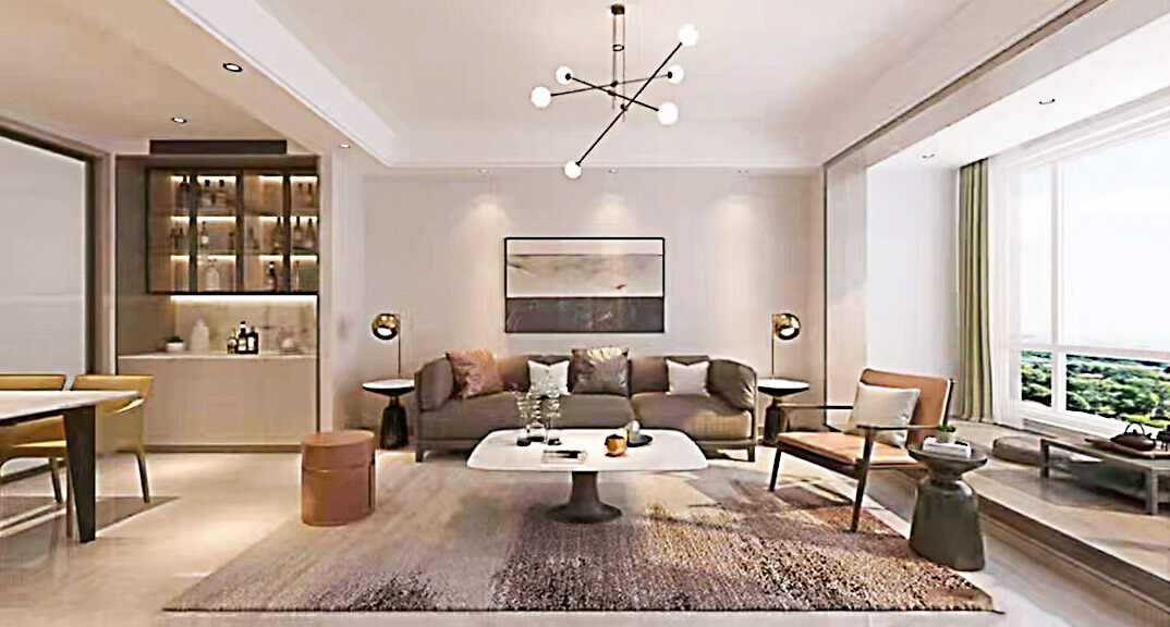 天一仁和瓏樾海115㎡別墅上疊客廳現(xiàn)代風(fēng)格裝修案例效果圖