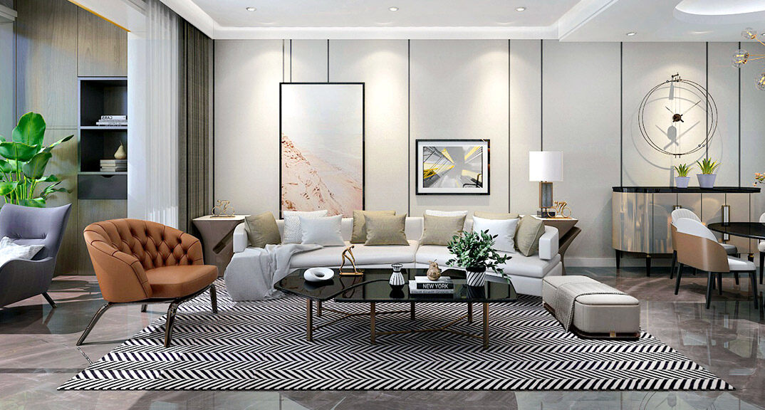 天一仁和瓏樾海135㎡別墅上疊客廳北歐風(fēng)格裝修研發(fā)效果圖