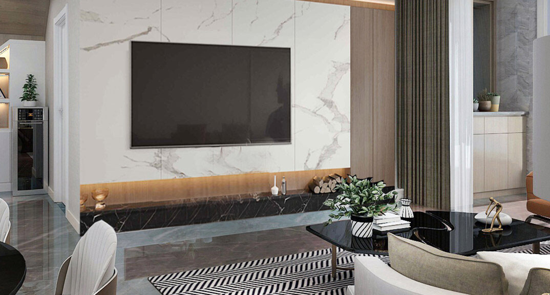 天一仁和瓏樾海135㎡別墅上疊客廳電視墻北歐風(fēng)格裝修研發(fā)效果圖