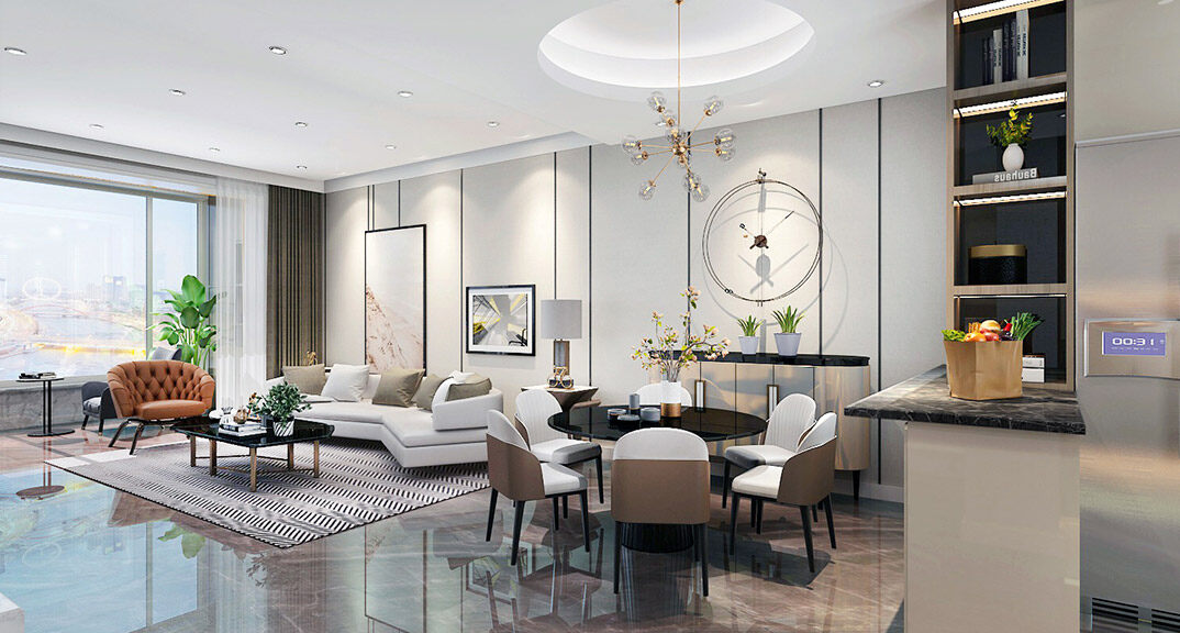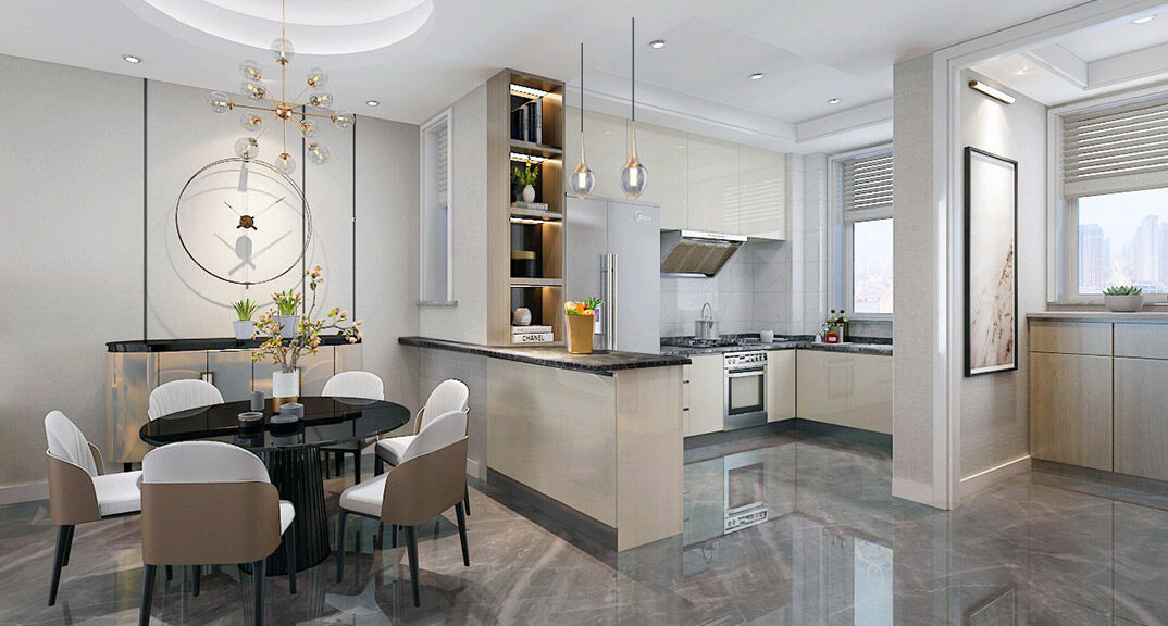 天一仁和瓏樾海135㎡別墅上疊餐廳廚房北歐風(fēng)格裝修研發(fā)效果圖
