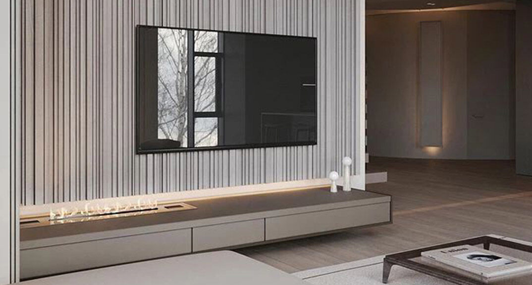 天一仁和瓏樾海142㎡別墅下疊客廳電視墻極簡風(fēng)格裝修研發(fā)效果圖