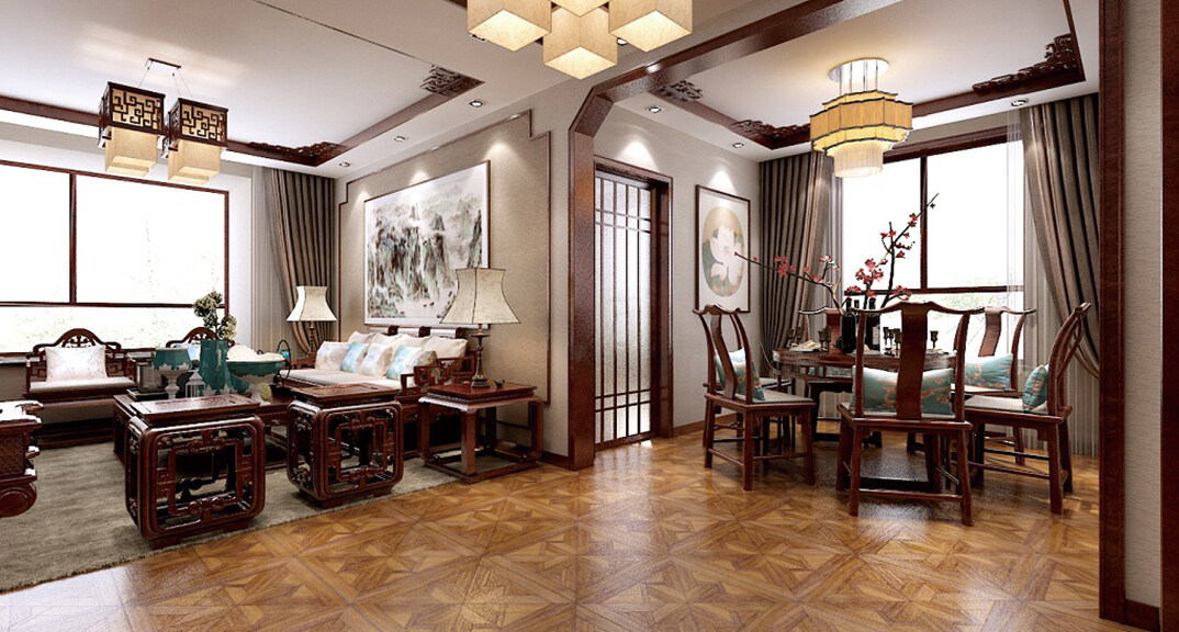 科大公寓138㎡別墅客廳沙發(fā)中式風(fēng)格裝修案例效果圖