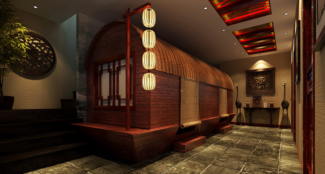 茶樓裝修200㎡茶室棋牌室中式風(fēng)格案例效果圖