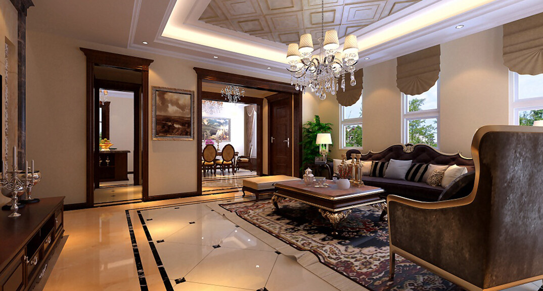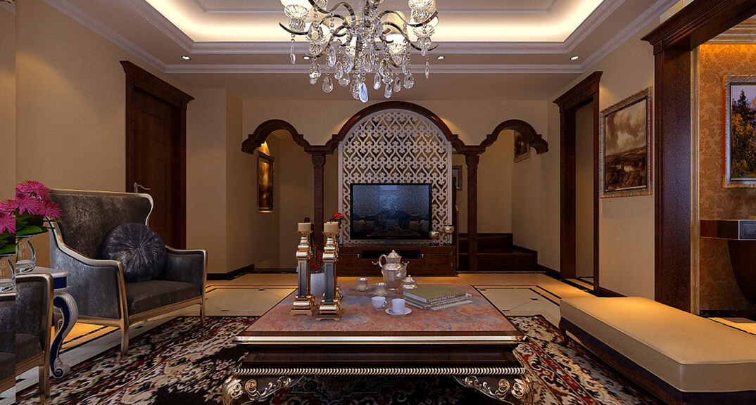 青特花溪地164㎡別墅客廳簡(jiǎn)歐風(fēng)格裝修案例