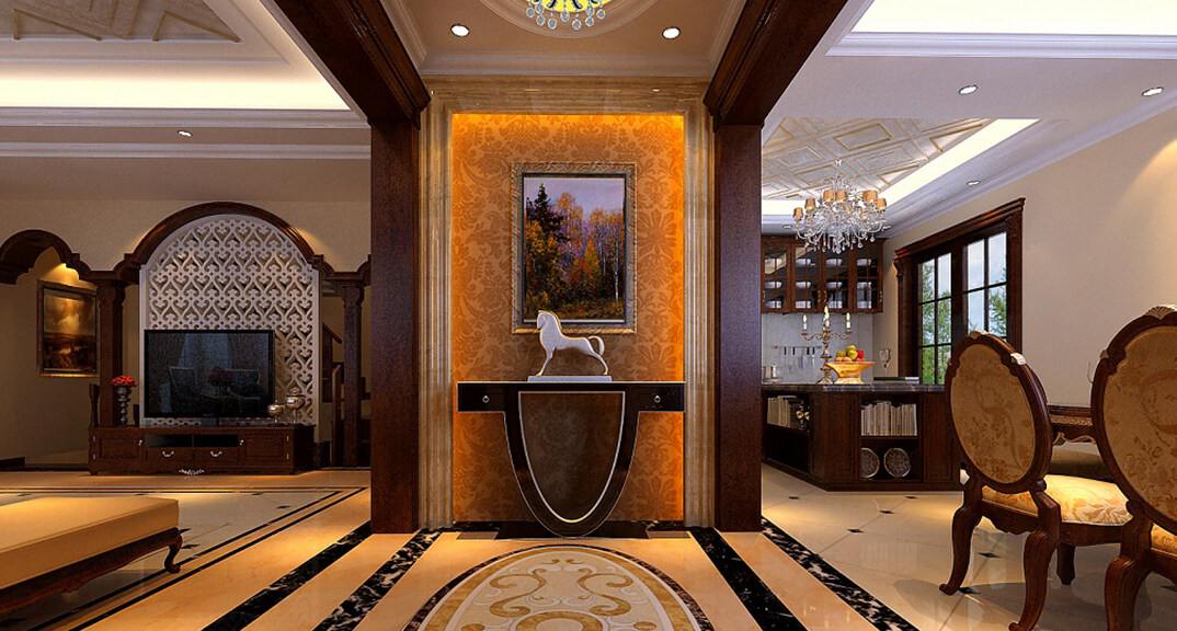 青特花溪地164㎡別墅玄關(guān)簡(jiǎn)歐風(fēng)格裝修案例