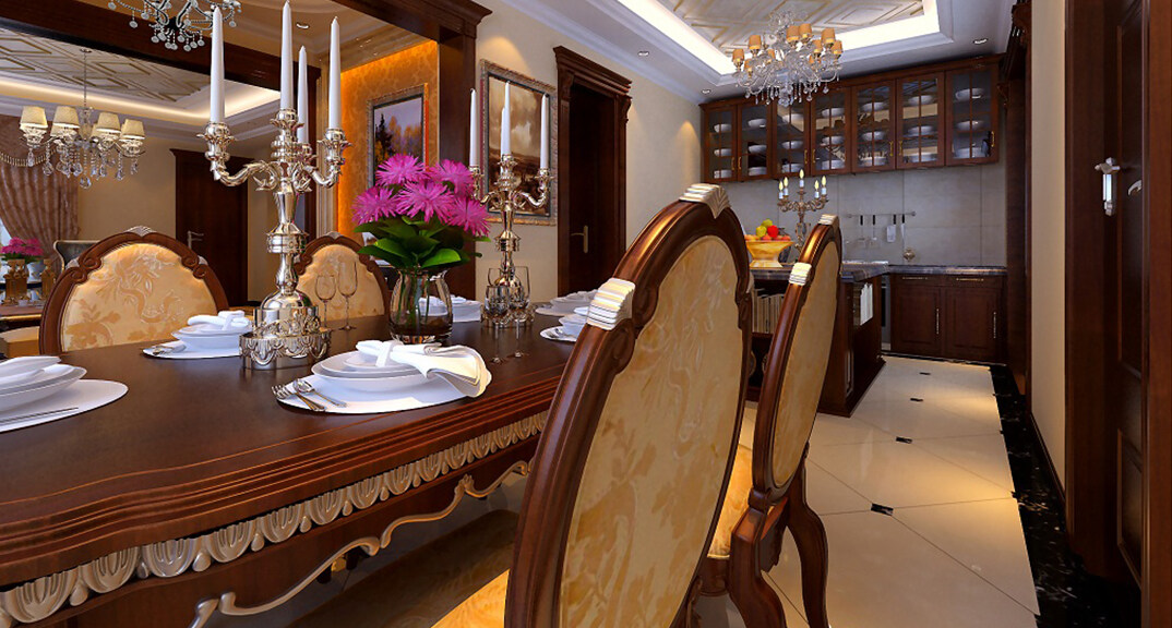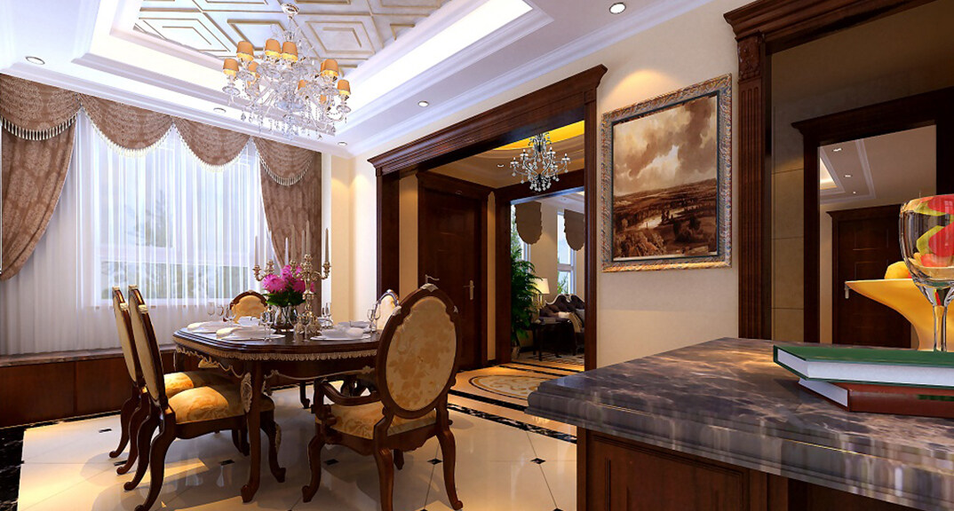青特花溪地164㎡別墅餐廳簡(jiǎn)歐風(fēng)格裝修案例
