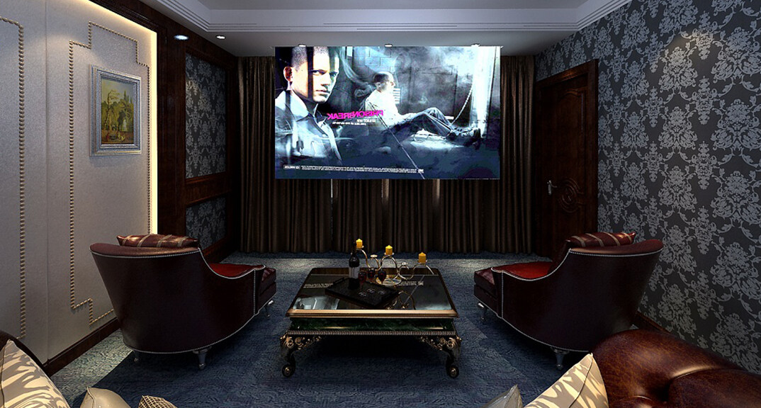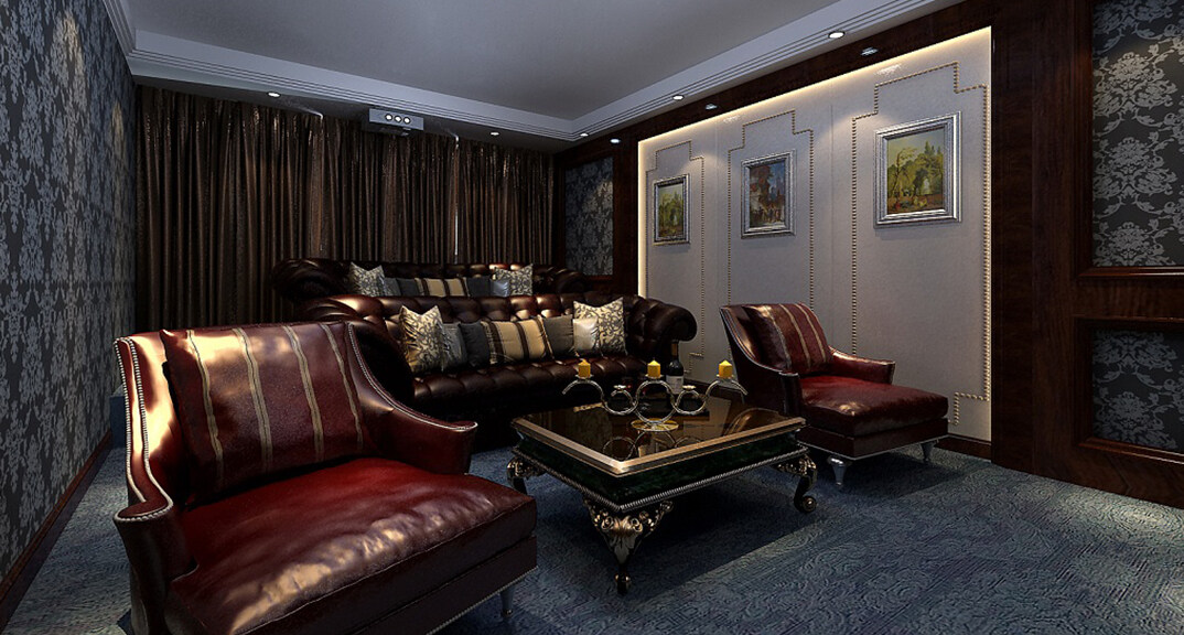 青特花溪地164㎡別墅視聽(tīng)間簡(jiǎn)歐風(fēng)格裝修案例
