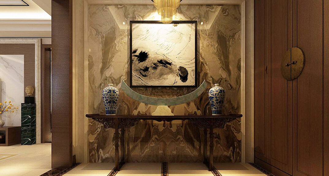 時(shí)代城318㎡別墅入戶玄關(guān)新中式風(fēng)格裝修案例效果圖