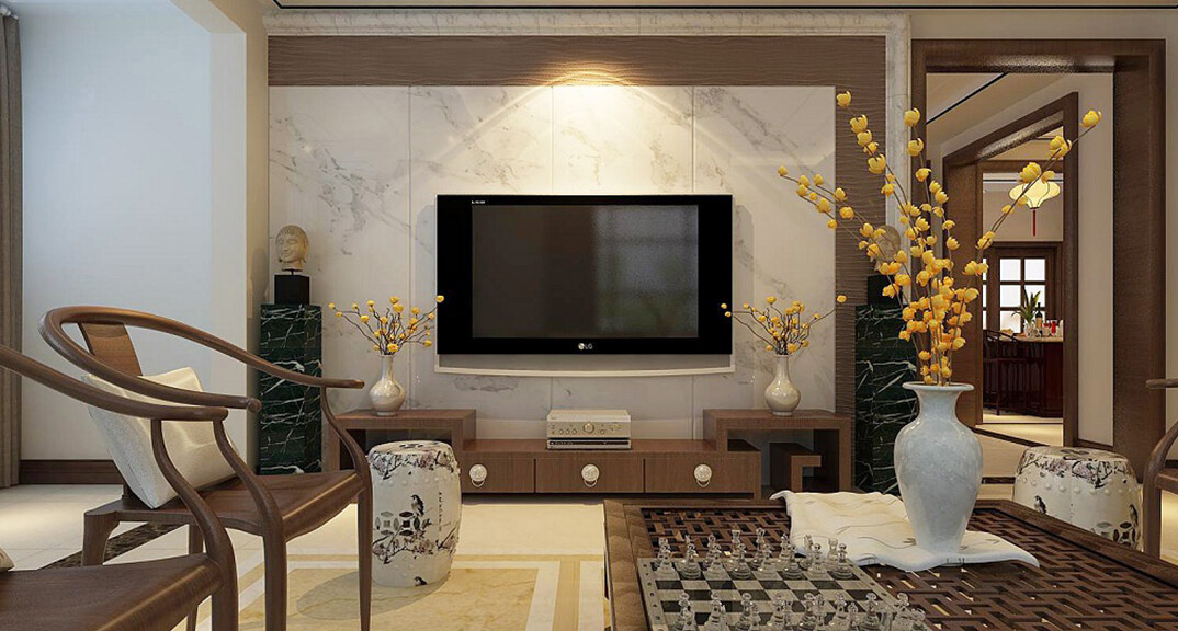 時(shí)代城318㎡別墅客廳新中式風(fēng)格裝修案例效果圖