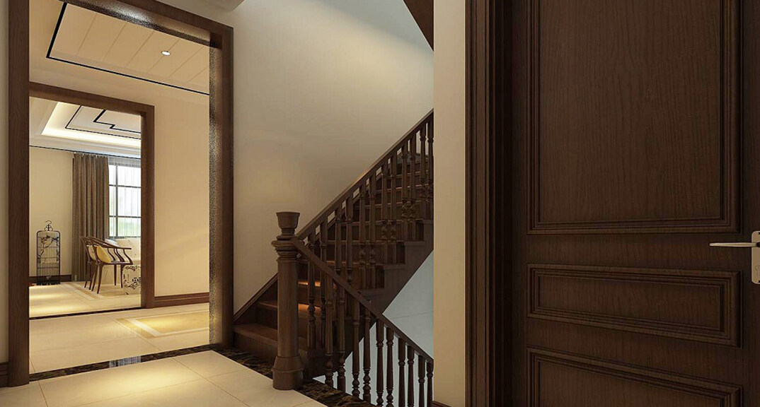 時(shí)代城318㎡別墅樓梯間室新中式風(fēng)格裝修案例效果圖