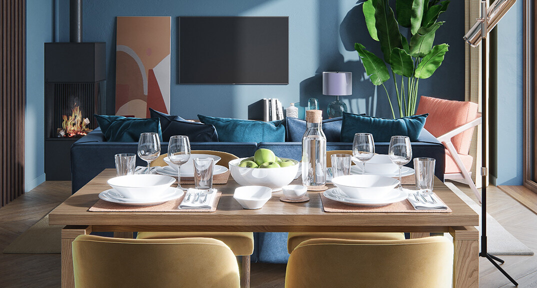 桃李芳菲4室2廳1廚2衛(wèi)126㎡客餐廳多彩北歐風(fēng)格案例效果圖