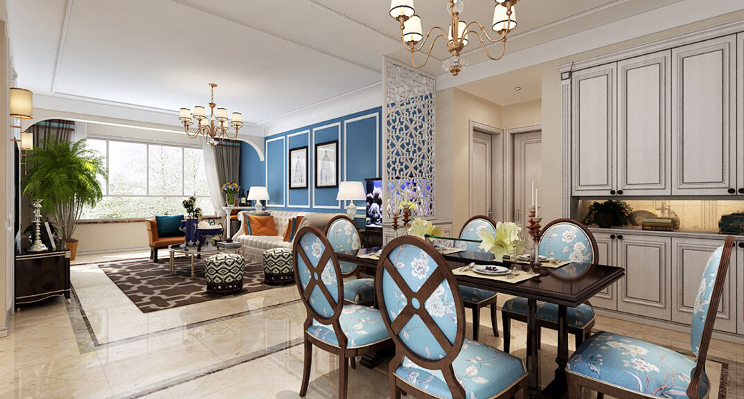 憑海臨風(fēng)142㎡三室二廳客餐廳美式風(fēng)格裝修案例效果圖