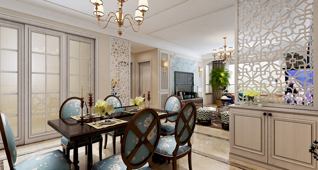 憑海臨風(fēng)142㎡三室二廳餐廳美式風(fēng)格裝修案例效果圖