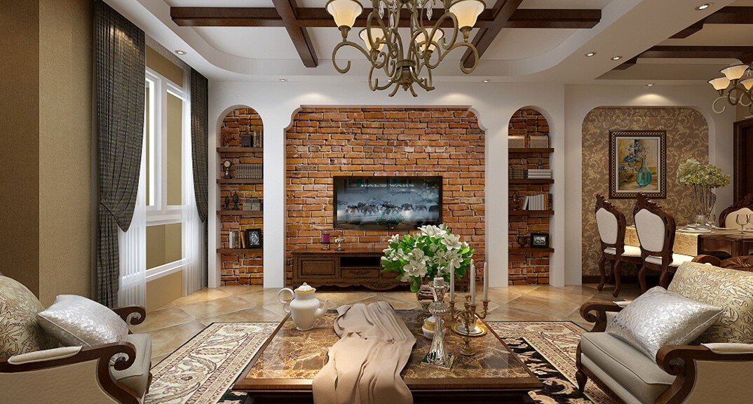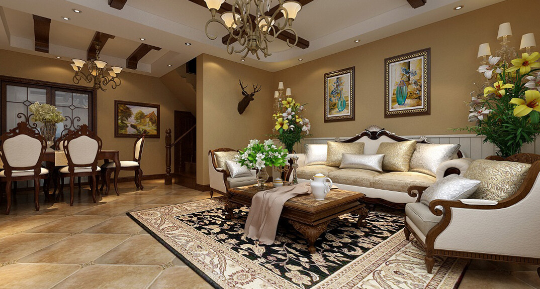 天一仁和郡172㎡別墅客廳美式風格裝修案例效果圖