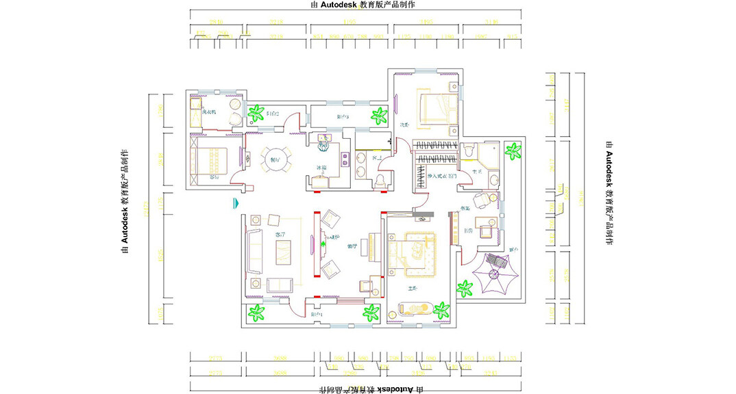 綠城·理想之城227㎡四室二廳戶型布置圖