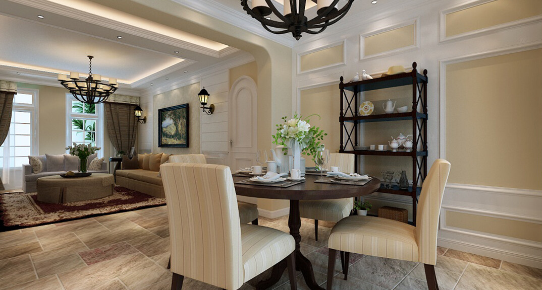 綠城·理想之城227㎡四室二廳餐廳美式風(fēng)格裝修案例效果圖
