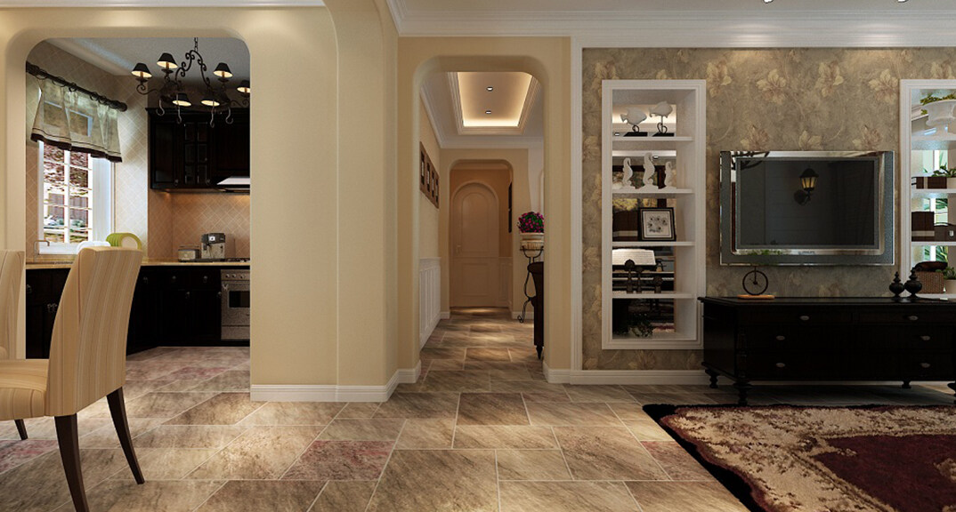 綠城·理想之城227㎡四室二廳客廳玄關(guān)美式風(fēng)格裝修案例效果圖