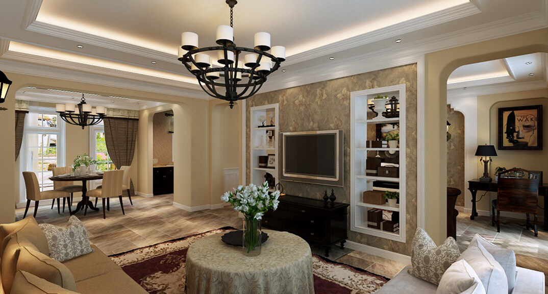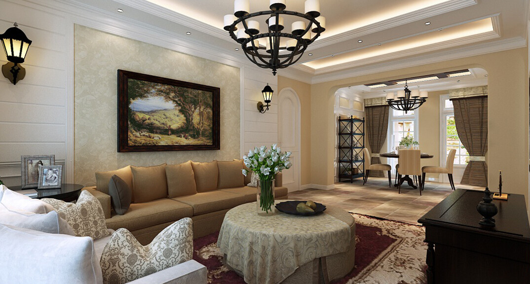 綠城·理想之城227㎡四室二廳客廳美式風(fēng)格裝修案例效果圖
