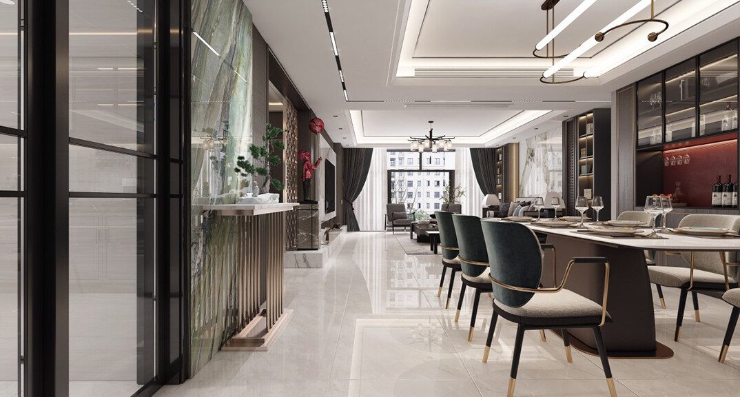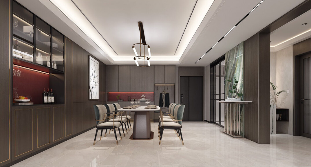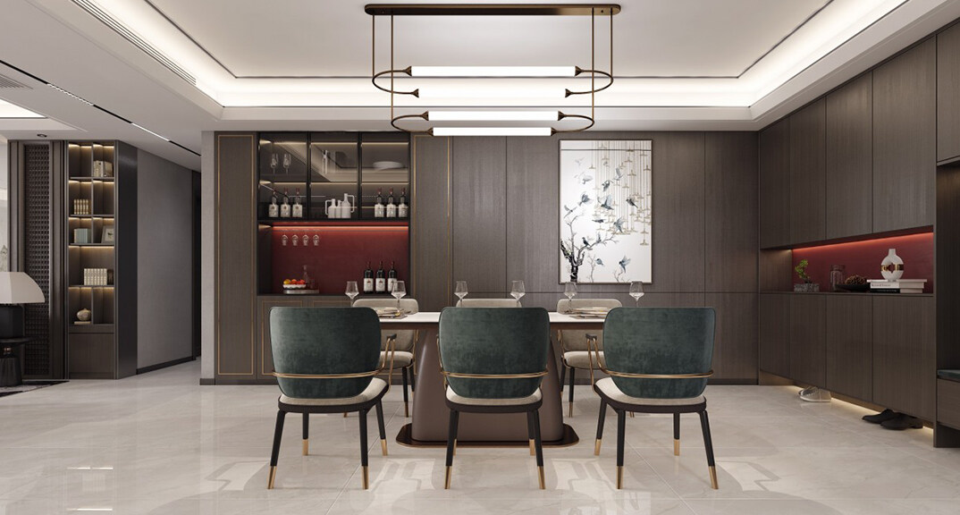 綠城·海棠印月166㎡三室二廳餐廳新中式風(fēng)格裝修案例效果圖